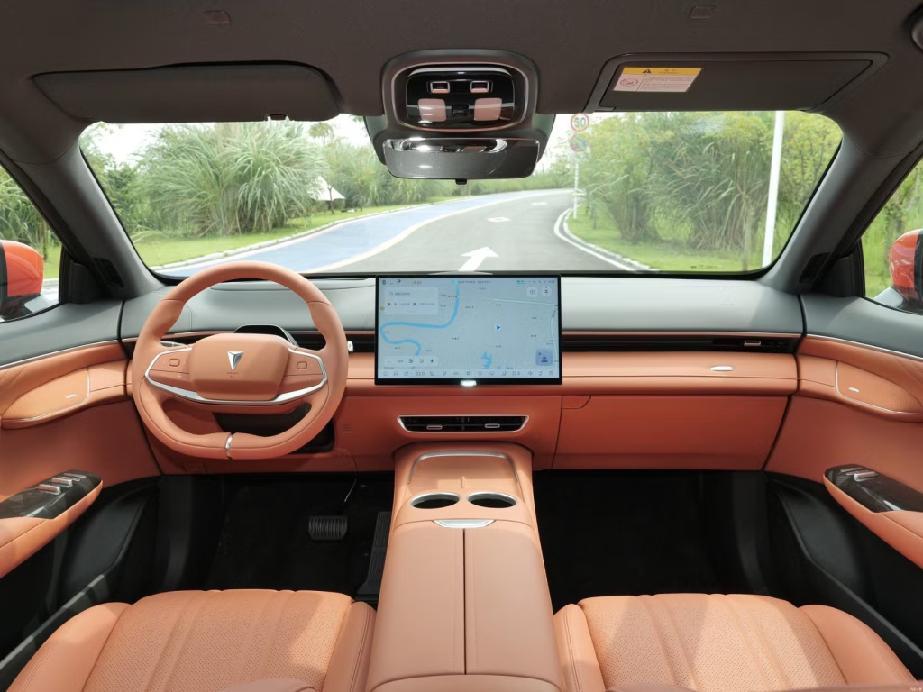 Masuk ke dalam kabin, suasananya langsung berubah—bukan sekadar mobil, tapi seperti ruang kendali di gim masa depan. Layar sentral 2.5K dengan tenaga dari Snapdragon chipset menghadirkan visual yang jernih dan responsif, seolah membawa pengemudi masuk ke dalam simulasi e-sports premium. Setiap tombol di dashboard, dengan bentuk intan dan pelindung merah khas kokpit pesawat tempur, menambah kesan eksklusif dan adrenalin.