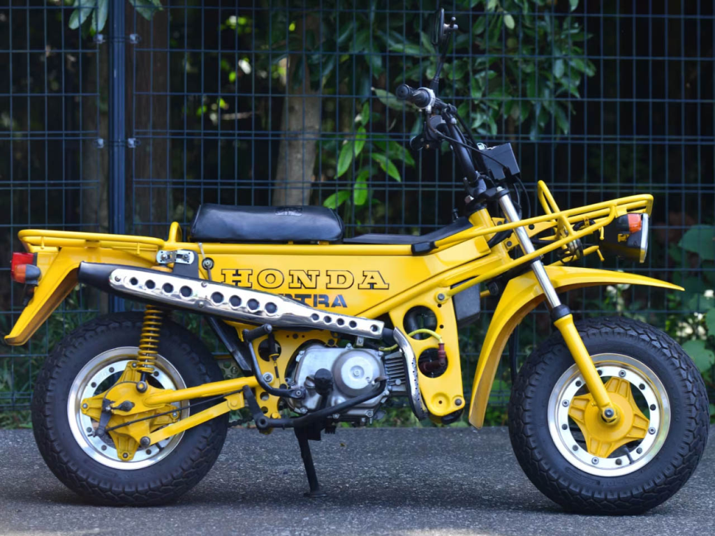 Desainnya benar-benar fungsional — mulai dari rak bawaan yang menyatu dengan rangka, bodi kokoh berwarna kuning khas, hingga postur yang siap menantang lumpur dan batu. Di balik bodi kompaknya, tersimpan mesin 49 cc 4-tak yang menghasilkan tenaga sekitar 4,5 hp, disalurkan melalui transmisi manual 3 percepatan dengan rasio gigi rendah untuk menaklukkan tanjakan ekstrem.