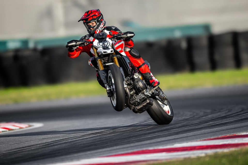 Pengembangan mesin V-twin 890 cc generasi baru menjadikan motor ini makin brutal. Tenaga puncak 120 TK dan torsi 94 Nm disalurkan dengan karakter yang galak, karena 70% torsi sudah muncul sejak 3.000 RPM. Hasilnya? Sentakan langsung, respons instan, dan akselerasi yang terasa hidup di setiap tarikan gigi. Ducati bahkan memangkas bobot hingga 13 kg (14 kg pada versi SP), menjadikan motor ini lebih lincah, agresif, dan mudah dikendalikan saat diajak bermanuver tajam.