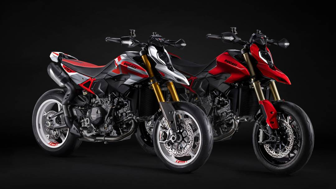 Hypermotard V2 hadir dalam warna Ducati Red yang khas, sedangkan versi SP tampil lebih spesial lewat livery 20th Anniversary—sebuah penghormatan untuk dua dekade perjalanan Hypermotard sebagai ikon hooligan bike kelas premium.