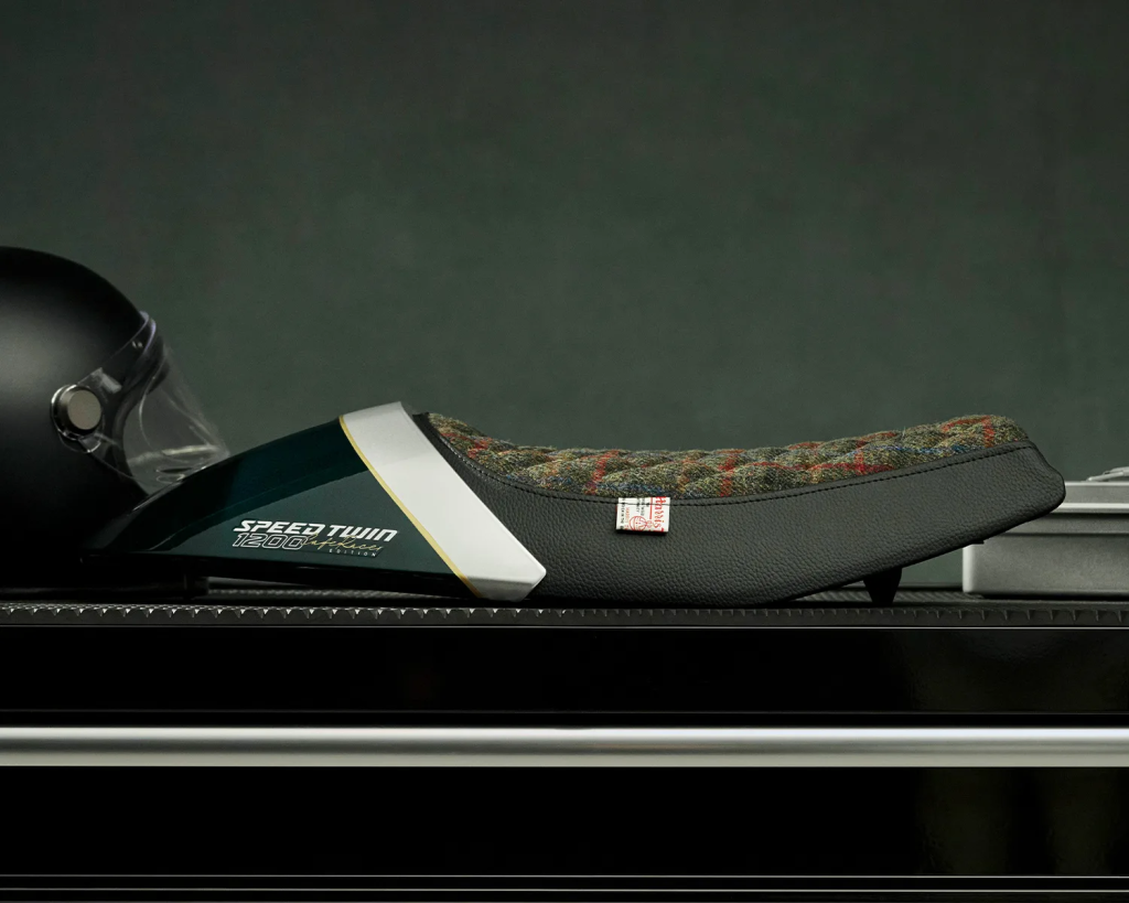 Secara tampilan, perbedaan paling mencolok pada edisi DGR ini terletak pada penggunaan jok eksklusif berbahan Harris Tweed, kain tenun tangan premium yang berasal dari wilayah Outer Hebrides, Skotlandia. Material ini terkenal karena kualitas tinggi dan nilai tradisionalnya, sehingga memberikan nuansa klasik yang autentik sekaligus meningkatkan nilai koleksi motor tersebut.