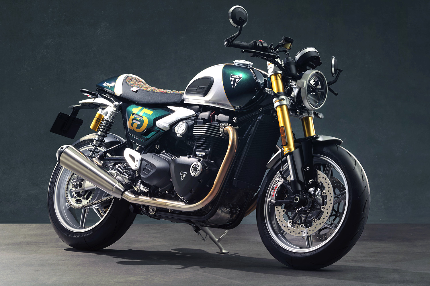 Selain itu, terdapat detail angka “15” berwarna emas di bagian bawah jok sebagai identitas khusus edisi DGR, yang menandai keterlibatan Triumph dalam mendukung gerakan sosial global melalui dunia otomotif.